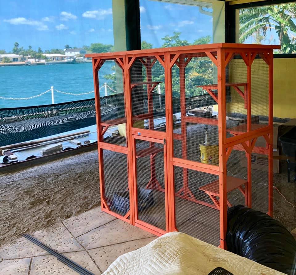 I wanted her to stay with someone she was familiar with. I asked my dad to take her in. She has been there with me multiple times prior on the weekends for short getaways. My dad has a house on the beach and his backyard is the Intracoastal. She loved running around in his backyard because it is composed of sand. To her that means one big litter box to dig in and geckos to chase. She loves the outdoors. However, my father has feral cats that run around outside in his neighborhood. Being calico, Callie has an attitude and she has fought with these cats in the past, so I wanted to make sure she was safe. I looked on Amazon and bought her a big outdoor cat condo. The reviews were great and it looked like fun to me! The 6 foot by 8 foot long wire enclosure has 6 platforms for her to jump on and look out. It’s all enclosed with wire like a chicken coop almost. If cats came around, they wouldn’t be able to claw through it. Our awesome handyman Daryl installed it and made a cat tunnel that went from the living room out to the cat condo. She can come and go as she pleases. Spoiled, yes, I know! Honestly, I’m jealous it looks so cool lol. I figured if I could make her as happy as possible she wouldn’t be as pissed off at me once I returned.